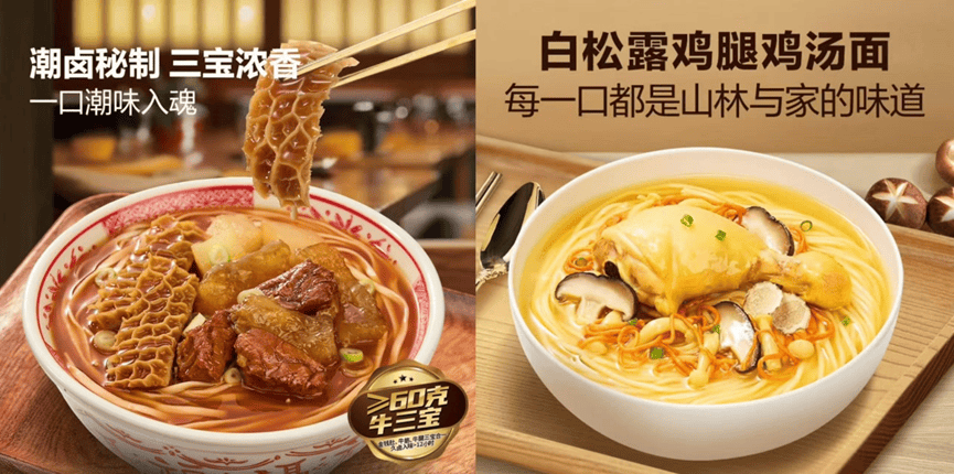 一方面,康师傅针对山姆定制了大单品潮卤牛三宝牛肉面,内含久卤12小时以上的金钱肚、牛筋、牛腱,总重量超60g。在大获成功后,其又迅速上线了白松露鸡腿鸡汤面。